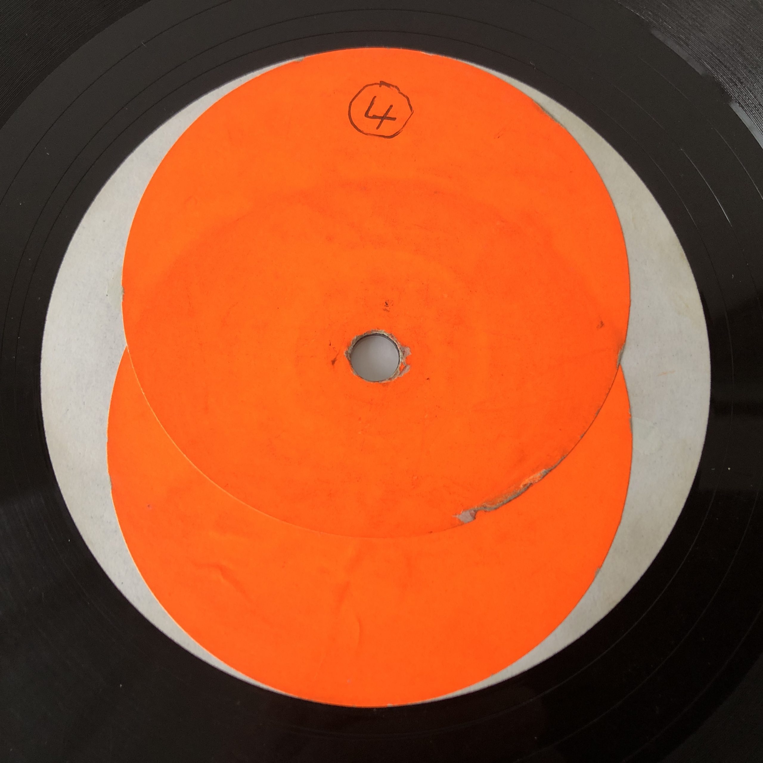 2 orange stickers on one side of label with a bit of small biro.